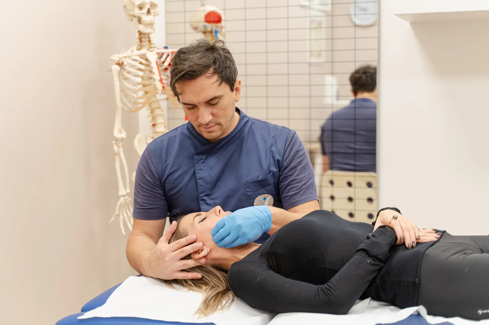 La valutazione prevede anamnesi mirata, test di apertura/chiusura e lateralità, palpazione dei muscoli masticatori e cervicali, screening occlusale e analisi delle abitudini (sonno, stress). In base ai reperti, costruiamo un piano personalizzato con terapia manuale, tecniche di rilascio miofasciale, esercizi mirati (mobilità, controllo, respirazione), educazione su posture e parafunzioni; quando indicato, integriamo terapie strumentali e la collaborazione con lo gnatologo (es. bite). Progressioni graduali e follow-up per prevenire recidive.