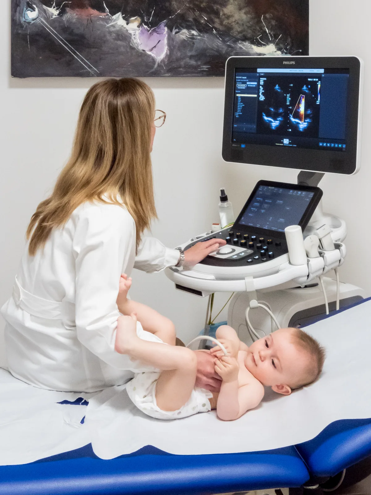 Equipe dedicata pediatrica, sonde ed ecoscopi specifici per età, percorsi con il pediatra curante e ambiente child-friendly.
